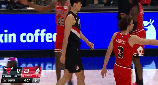 第三节,上来公牛奥科罗连续两记三分拉开分差,开拓者阿夫迪亚、格兰特联手得分给予回应,但紧跟公牛武切维奇、基迪相继三分再度拉大至9分,开拓者格兰特、乐福艰难得分止血,随后公牛基迪、奥科罗连续三分将分差拉大至16分,节末段杨瀚森替补登场,上来补防便被对手晃起打成2+1,随后反击快下遭大帽,单打再度被段,三节结束,公牛98-82开拓者。